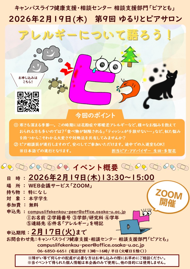 『アレルギーについて語ろう!』オンライン開催! 2026年2月19日(木) 第9回 ゆるりとピアサロン