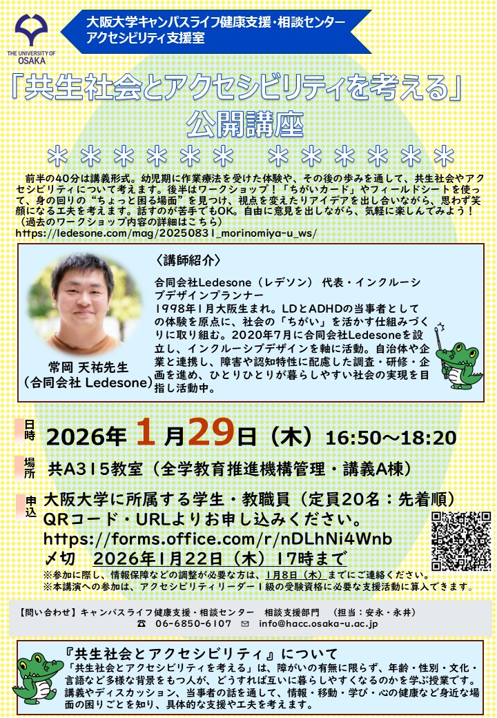 ※本講演会は授業『共生社会とアクセシビリティを考える』の最終講義を公開形式で行うものです。